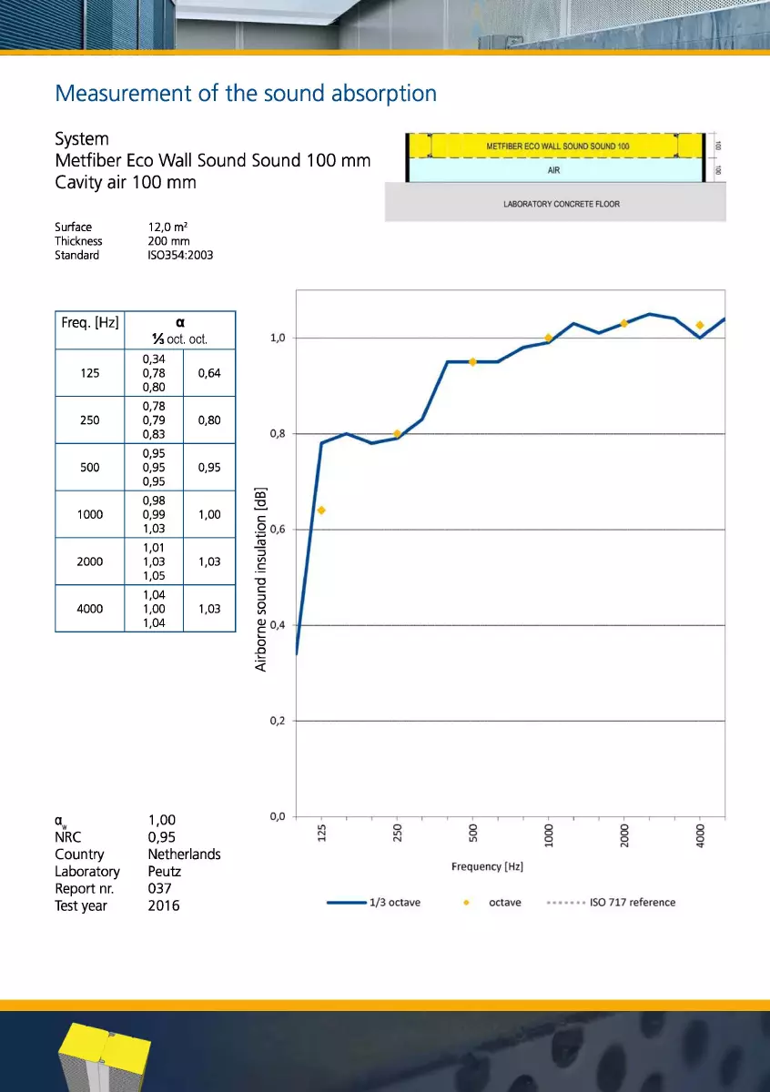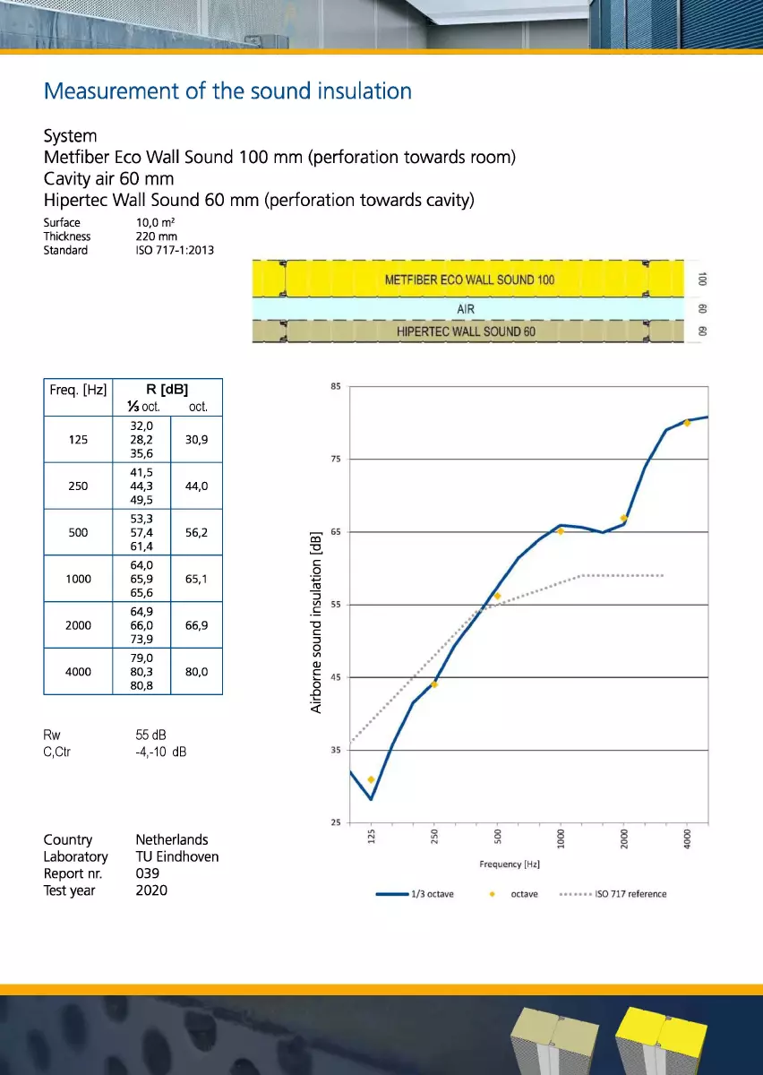 Pour atteindre des valeurs d’isolation acoustique plus élevées, Metecno Sound a développé un grand nombre de systèmes différents. La valeur de 70 dB a pu être mesurée en laboratoire. En utilisant des matériaux classiques comme les plaques de plâtre, la laine minérale et les panneaux sandwich acoustiques, tous les systèmes sont faciles à mettre en oeuvre et permettent d’atteindre l’objectif de manière rentable en terme de coût de matériel et de temps d’installation.